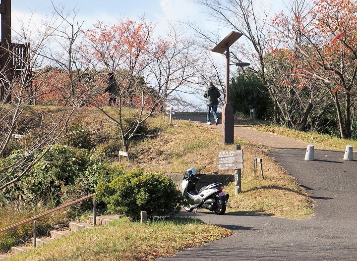 暫しジュウガツザクラに眼を向けておりますと、バイクの音で振り返りますと、男性がお一人上がって来られました。