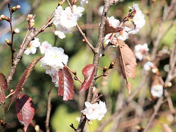 途中、散策道脇にジュウガツザクラが眼に入りました。小粒ですけど、この時期ですから、ジュウガツザクラもそれなりに眼を楽しませてくれますネ(^.-)☆