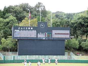 で、当日は祭日でもありますし、台風も無事過ぎ去りました事もありまして、GONsanも観戦で「かさおか古代の丘スポーツ公園内どんぐり球場」行きとなりました(^.-)☆