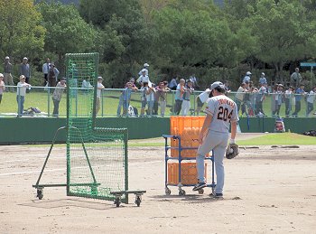 この巨人選手の練習中には、レフト側外野席のみ賑やかです(^.-)☆