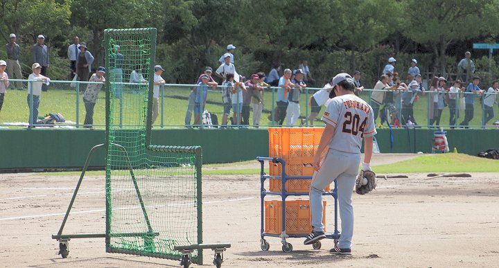 暫く巨人選手の皆様の練習に眼を向けておりましたら、突然のハプニングが(^-^;