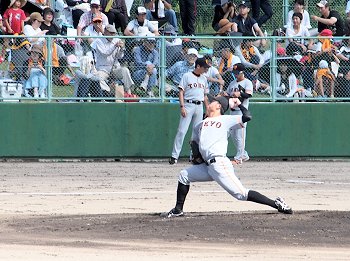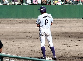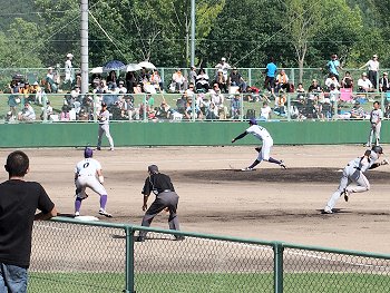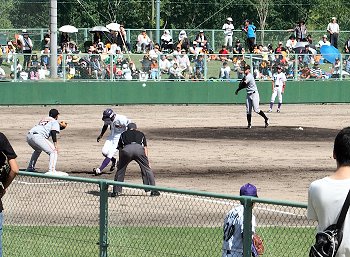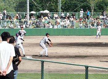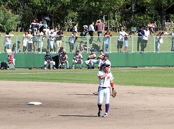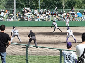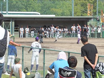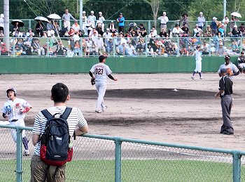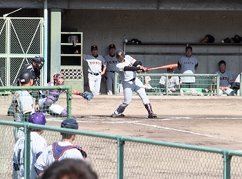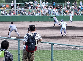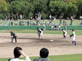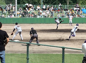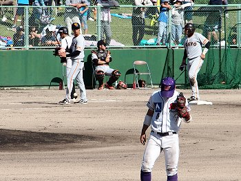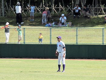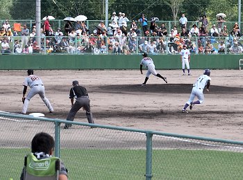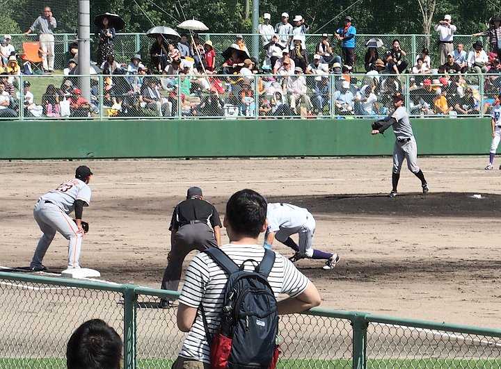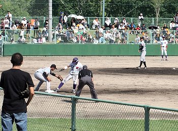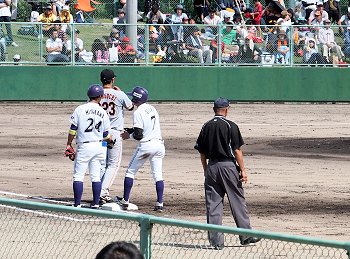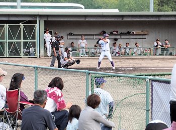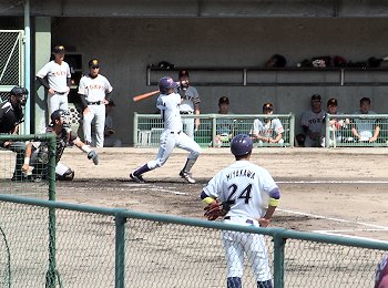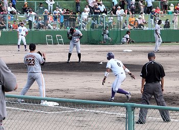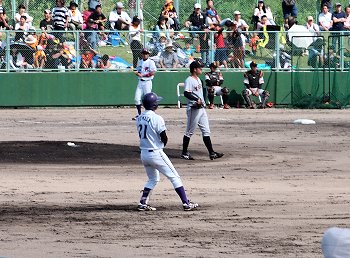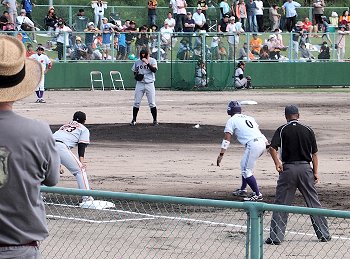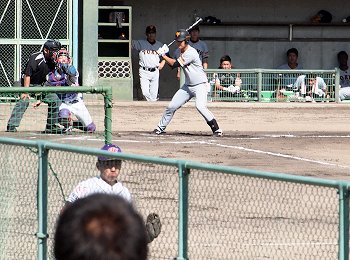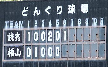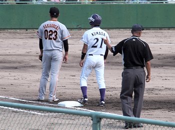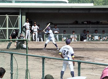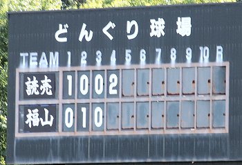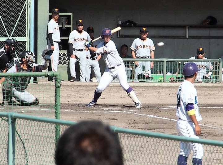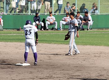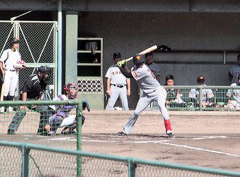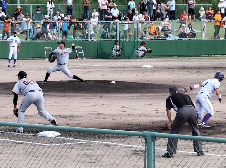 同点に追いつきまして、出塁しチャンスとなりましても、2盗で巨人捕手に刺されます福山ローズファイターズ。