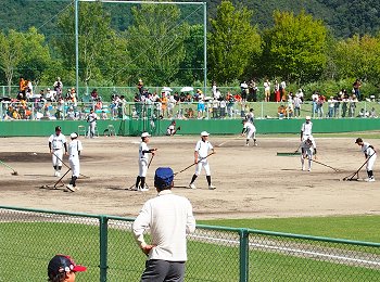 5回を終えますとグランド整備。一呼吸おきまして、後半の福山ローズファイターズの反撃を期待しますGONsanなのであります(^-^)//"