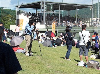 周辺を見廻しますと、いつのまにかテレビ局の方なんでしょうか…三脚に据えられましたカメラの文字にズームアップ。そうしましたら「ゆめネット」の文字が(^-^)