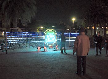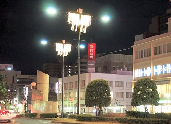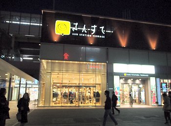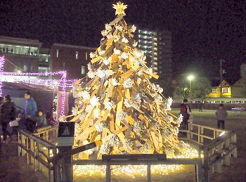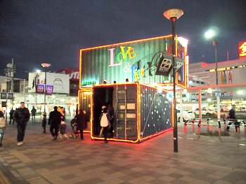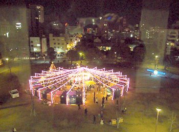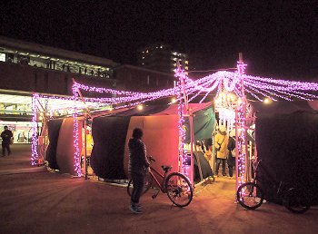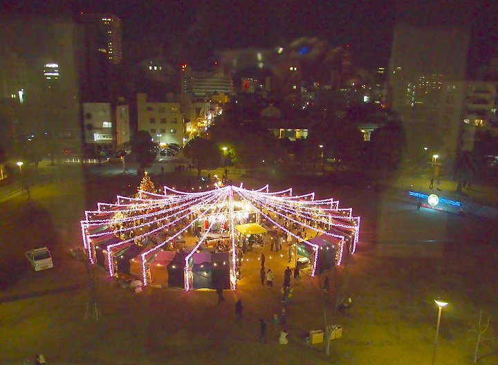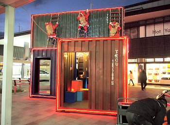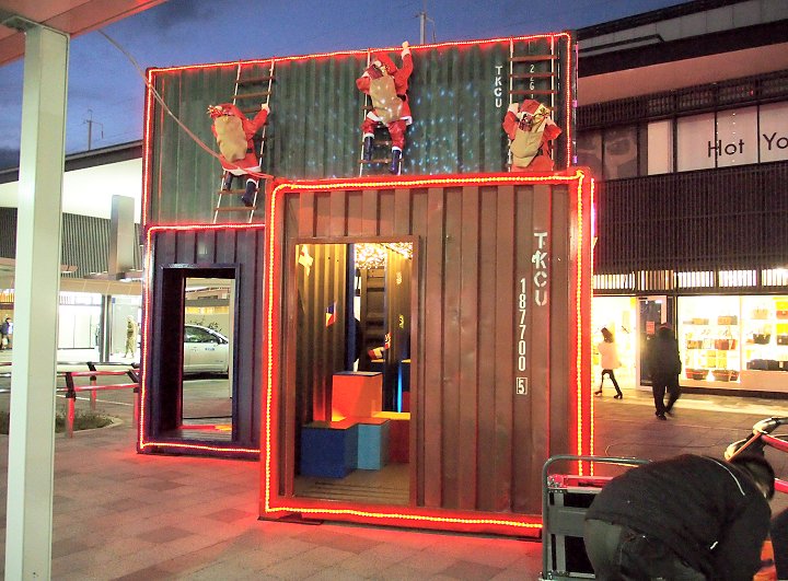 駅南口のコンテナイルミネーションを画像に納めますと、天満屋方向に。