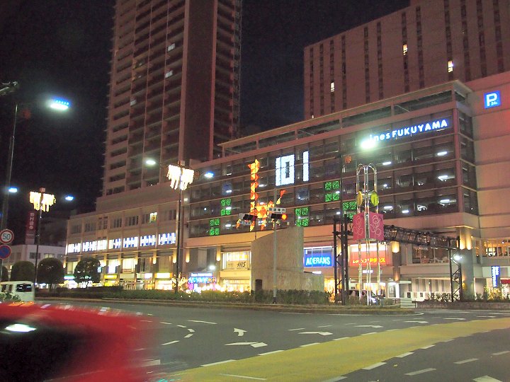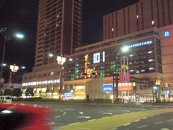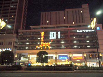 天満屋前からは、アイネスフクヤマの壁面と言いますか窓ガラスのイルミネーションが眼に入ります。キリンsanをパチリとなりました(^.-)☆
