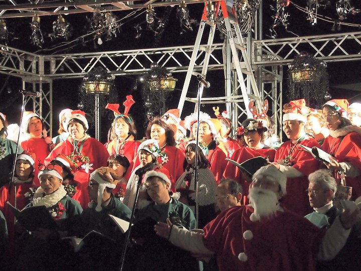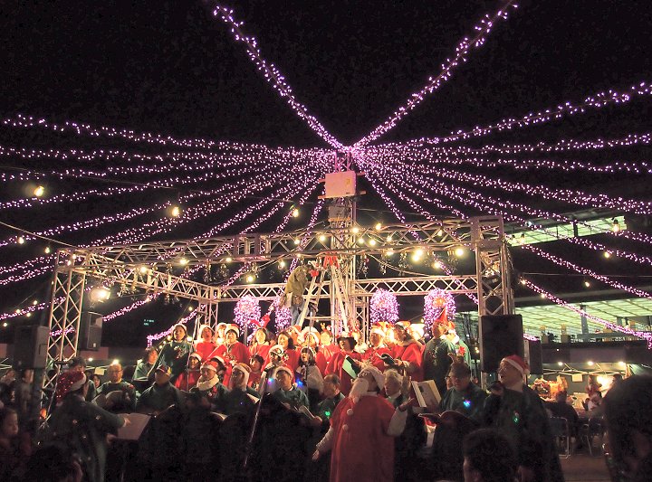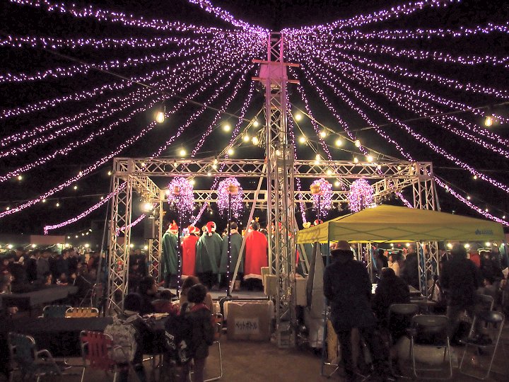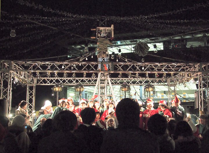 ステージ後方で、脚立に上がりゴソゴソしておられました男性は、イルミネーションの点灯の準備をしておられましたのですねぇ〜ヤッと納得です。