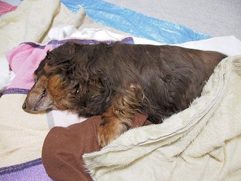 先生は、歯の状況から「推定年齢は1歳半〜2歳」との事でしたので、ゴンchanの誕生日は「2005年8月12日」と設定。と言う事は、行年12歳となりますのでしょうか…