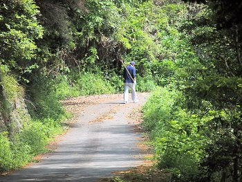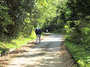 はてさて、どちらのルートで頂上に向かおうかと思案し車道の先に視線を移しますと、お一人男性が先行です。