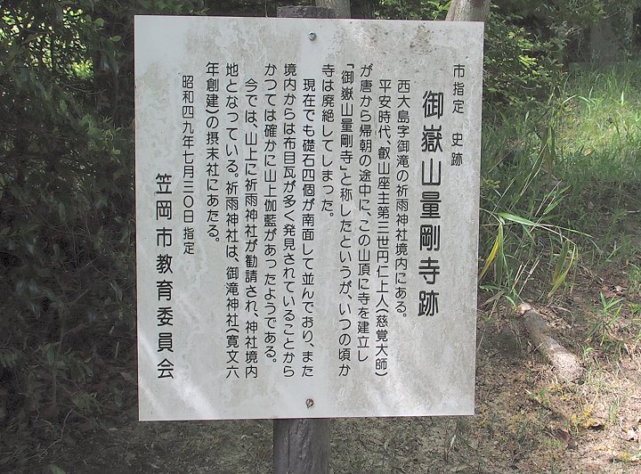 そして、その傍らには「御嶽山量剛寺跡」の史跡案内表示板が…