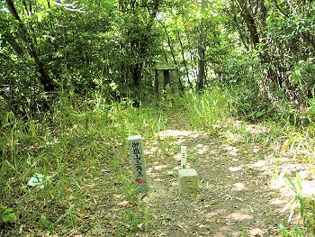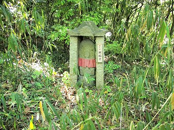 樹木に囲まれました三角点は特に観るべきモノもなく近くの石仏をパチリ。そして急いで広場にと逆戻りです。