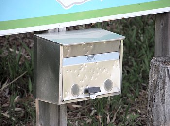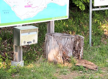 面白いのは、「御嶽山・四尋山 登山案内図」の表示板の足元には郵便受けが設置です。この郵便受けは何に使用されますのでしょうねぇ〜
