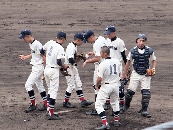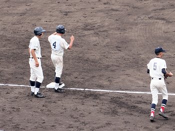 両チームともチャンスをモノに出来ませんで4回表まで進行です。 が、その裏の神辺旭の攻撃です。ヤッと1点先取。 このまま逃げ切れるとも思いませんけど、地元・神辺旭の1点リードで、とりあえず一安心のGONsanなのであります(^-^)//"