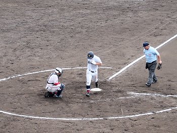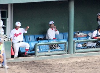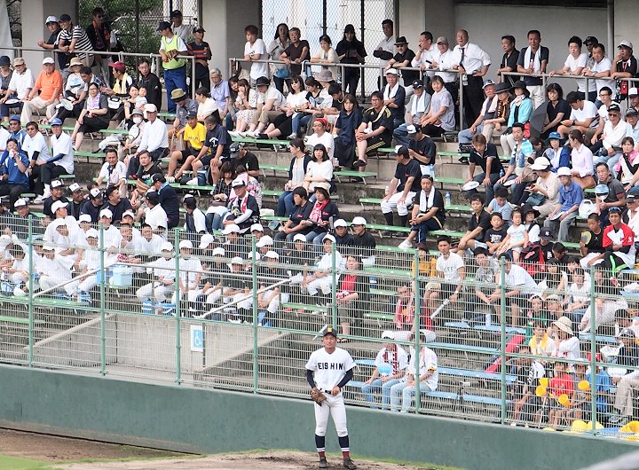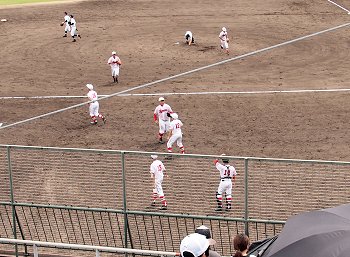 暫く耳を傾けておりますと、盈進の投手の球速は、135〜145km/hのようですネ(^-^)