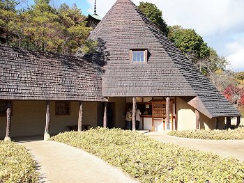 神勝寺のシンボリックとなる様、設計・建築された、藤森照信 建築の寺務所です。