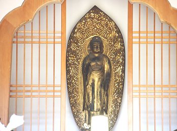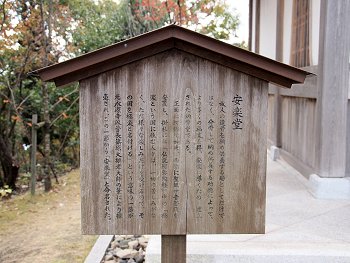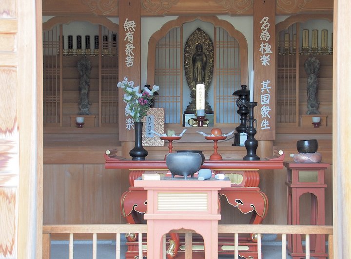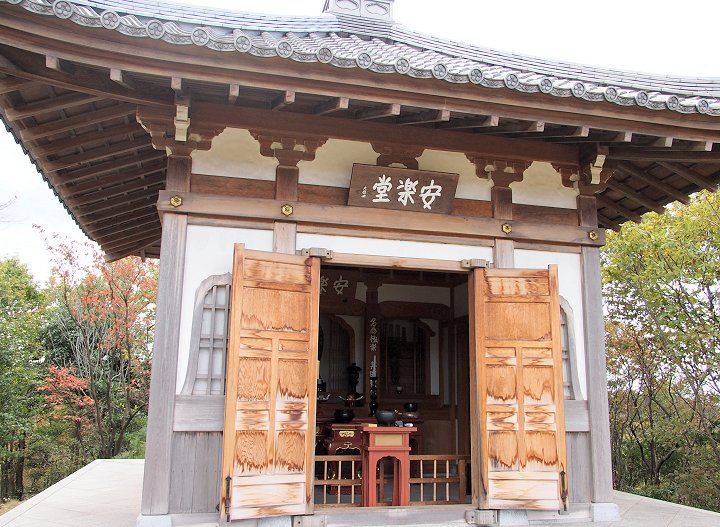 正面に阿弥陀如来、両脇に聖観世音菩薩を安置し、掛札には「仏説阿弥陀経」中の「極楽という国に住む人々は、一切の苦しみがなく、ただ様々な楽しみだけを受けるので、その国を極楽と名付ける」という意味の一節が元永源寺派管長篠原大雄老大師の筆により揮毫され、この一節から「安楽堂」と命名された。