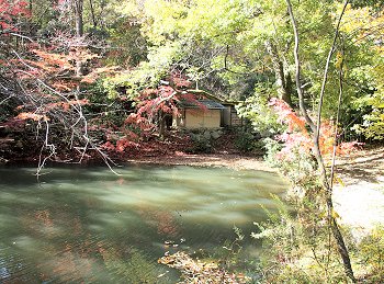 現在の表千家と大きく異なるのは、残月亭の南側に不審菴が接して建ち、その南に露地がつくられているところである。内腰掛からまっすぐ不審菴へ向かって苑路がのび、その右側には大きな枯池が横たわっているのが、昔の露地の特色であった。
