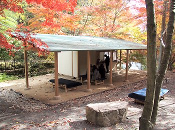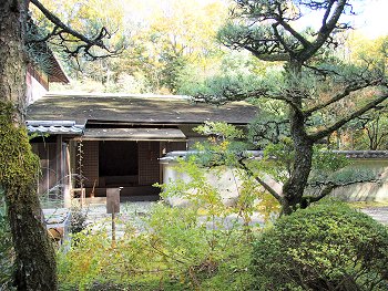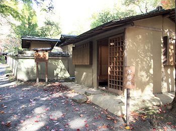 この露地は中根金作氏の指導のもと、みごとに昔の姿が再現されている。この茶席は開基遺愛の席であった。