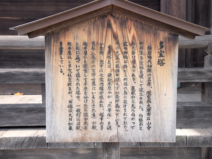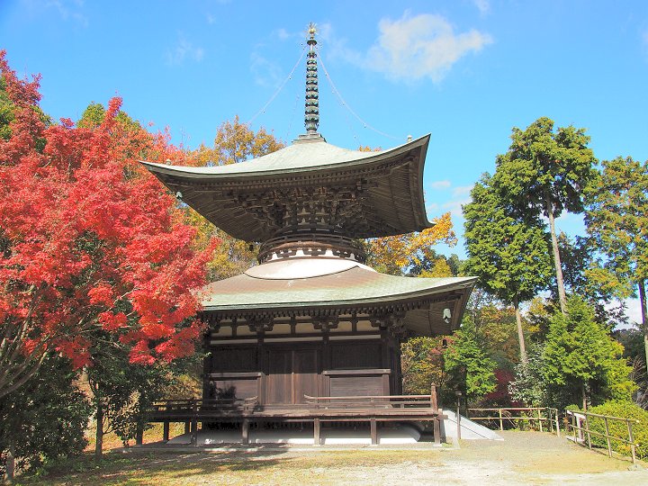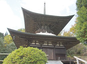 多宝塔とは、釈迦牟尼仏が「法華経」を説いた時、空中に七宝の塔が現われ、塔中の多宝仏(東方の宝浄世界にいるとされる)が釈迦牟尼仏を讃嘆して半座を分けたと説かれることに基づいて造られた塔で、一般的には釈迦牟尼仏と多宝仏を祀るが、当塔は大日如来を安置している。