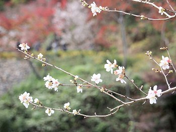 …と、こんな多宝塔で、洸庭へと繋がります架け橋の渡口にはジュウガツザクラが咲き誇っておりました(^.-)☆