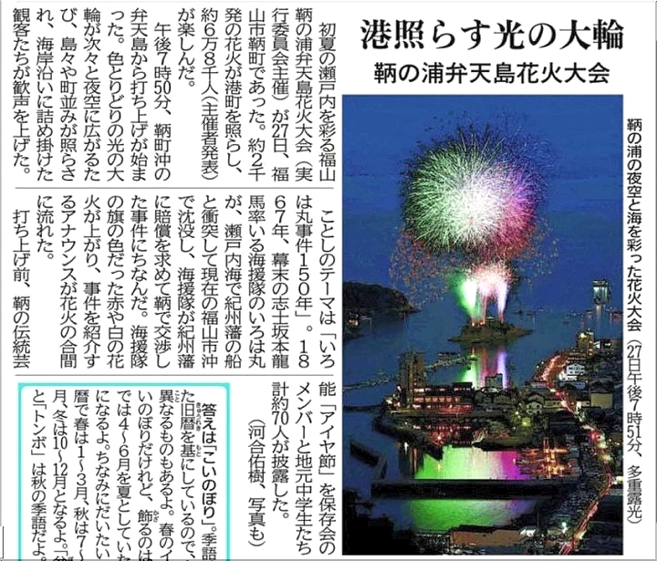 GONsanなんぞは、毎年、この鞆の浦弁天島花火を眼にしますと、「いよいよ夏到来!!」と、こんな気持ちを抱きます。