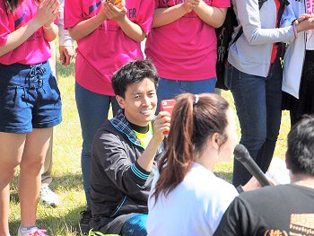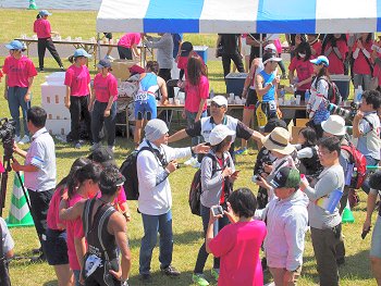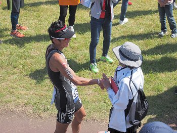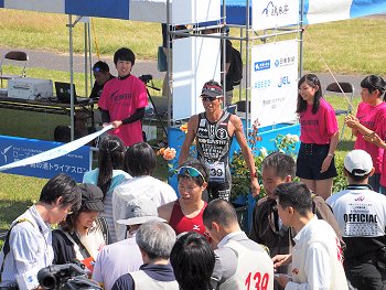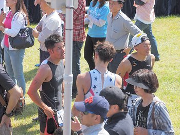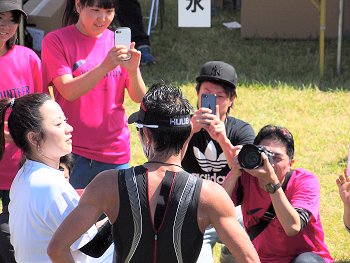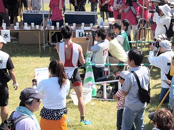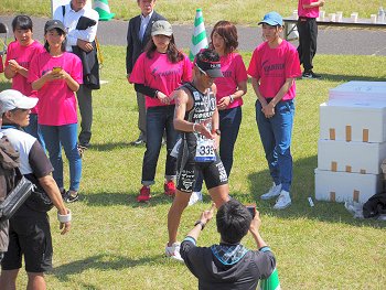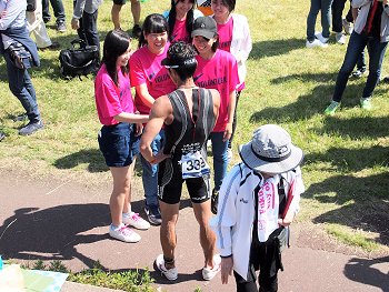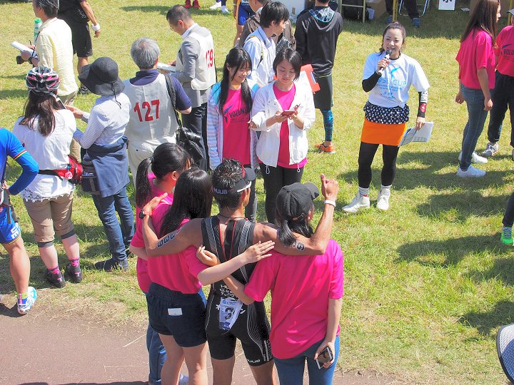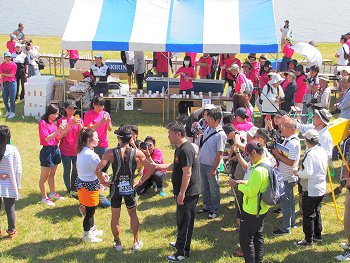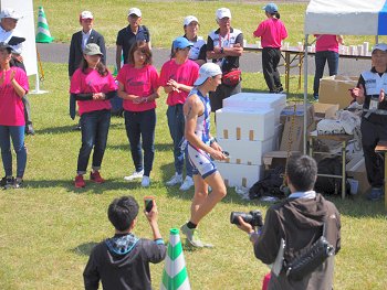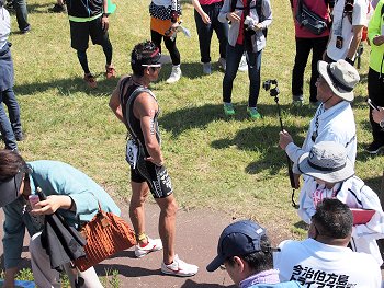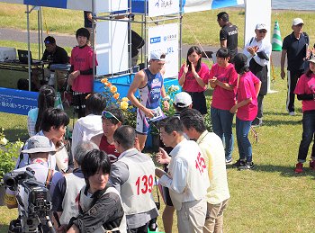 一人、また一人、そして三人、四人…とゴールします選手が続きます中、依然として池田康智選手の廻りには取材記者の方々が…