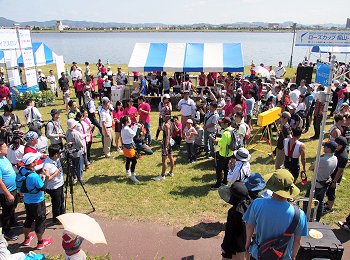 暫くフィニッシュ地点の賑わいを見つめておりましたら、いつの間にか小林史明代議士のお姿が(^.-)☆
