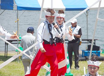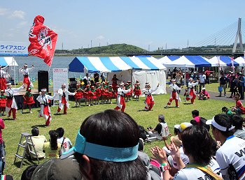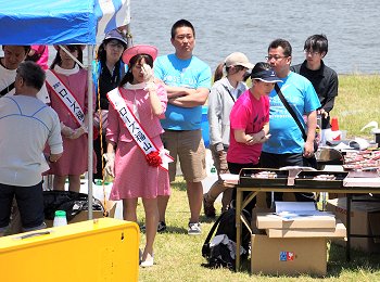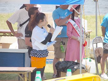 ローラちゃん応援隊のステージが続いております間、表彰式も刻一刻と近付いて来ますので、司会の女性も表彰選手の確認でご多忙の様子。