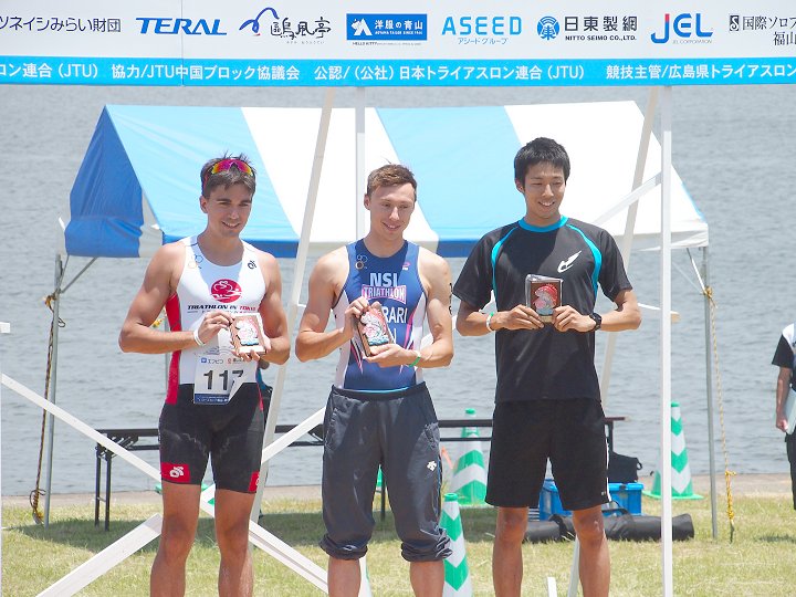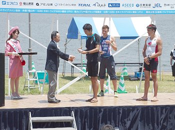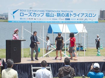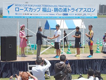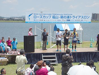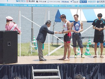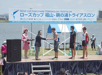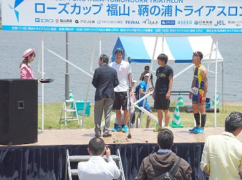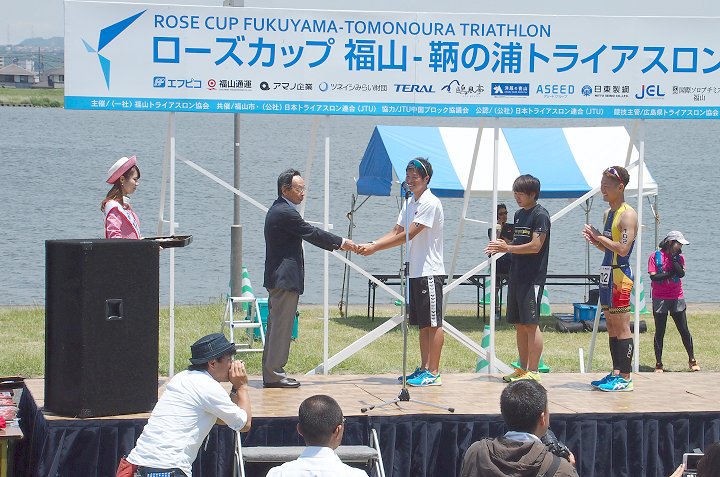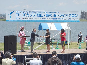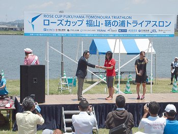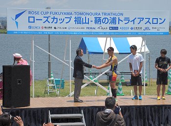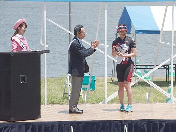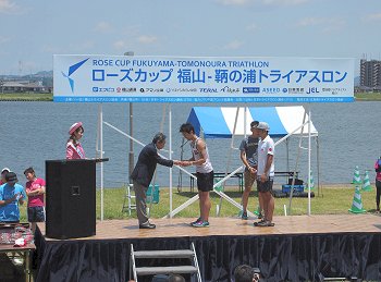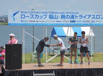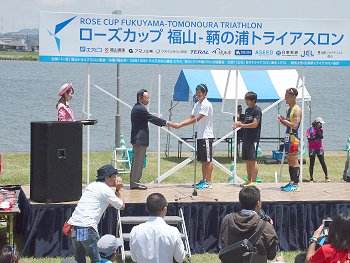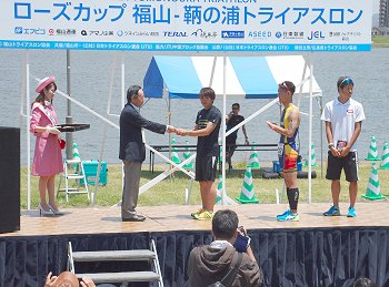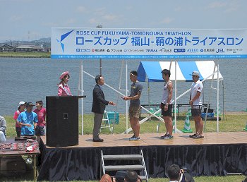 総合優勝者(帰路につかれ表彰式には欠席)へのプレゼンターは、福山トライアスロン協会の天野肇理事長sanでした。