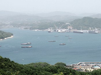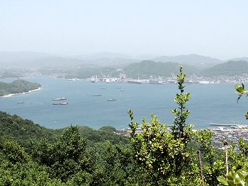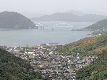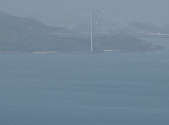 (右)これは因島大橋の因島側の主塔です(^.-)☆ 右端に小さく見えますのが「大浜埼燈台」ですねぇ〜