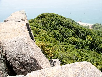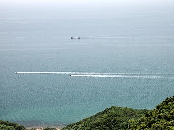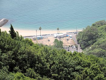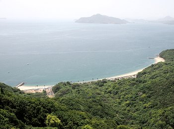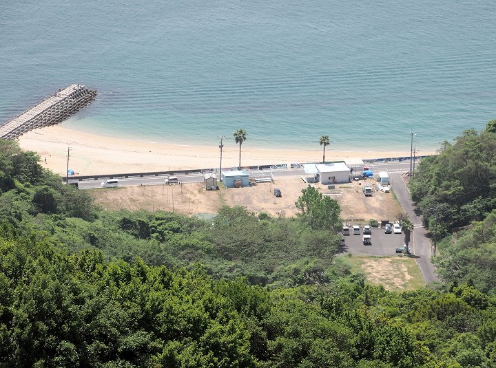 王城切石山公園への上り口付近の海岸にも、結構、ご家族連れがおられましたのですけど、こぅして上から眺望しますと人影は見えません。