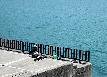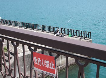 岸壁側では、「魚釣り禁止」の大きな表示板が掲げてありますにも拘わらず、堂々と、ノンビリと釣りを楽しんでおられます方が…チョッと笑えてしまいます(^-^)