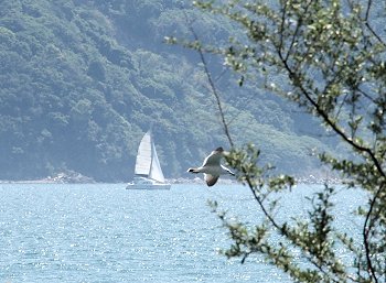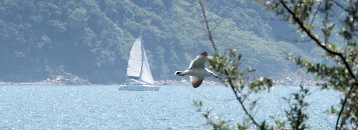対岸方向が今夜の宿となりますのですけど、ヨットを撮ろうとカメラを向けますとカモメsanが入ってしまいました(^_^)v