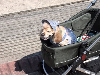 もぅ結構な老犬なのでしょうか…ベビーカーに乗せられましたワンchanも(^_^)v