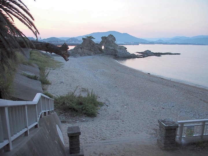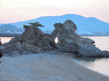奇岩といわれ、かつては観光案内には必ず紹介されたものだが、今では立て札もなく、釣り人と画家以外は気にもしないで通り過ぎてしまう程度の岩場である。