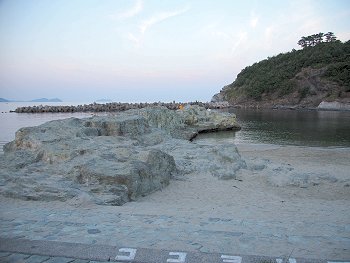 この表示板に従い海岸にと下りて行きますと、まず眼に入りましたのが『蓬莱岩』でありました(^_^)v