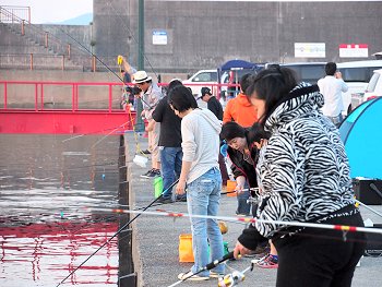 港では、早朝から大勢の釣り客が訪れておられます。意外にも、女性の釣り人・ご家族連れの方々が多いのにもビックリです。
