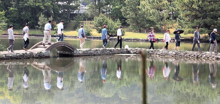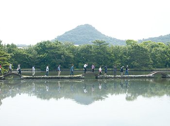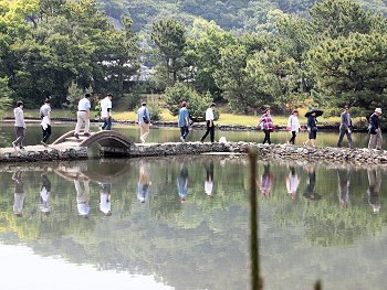 日本庭園としては珍しい直線状の三ツ橋…うん、うん、これですネ(^_^)v