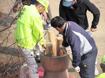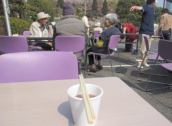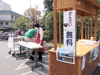 昨年までは気が引けて素通りでしたけど、今回は、お言葉に甘えて立ち寄らせて頂きました。紙コップに入れて頂きました「ぜんざい」の美味しいこと(^_^)v