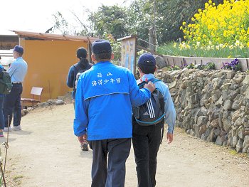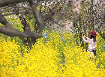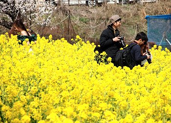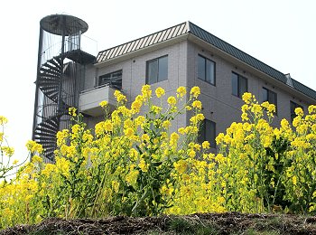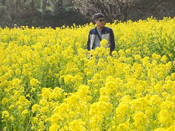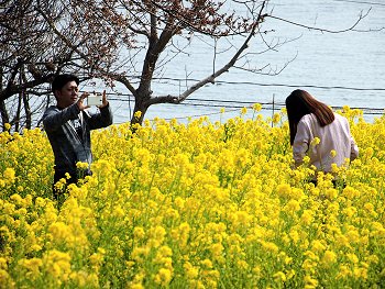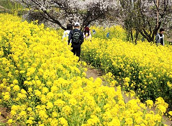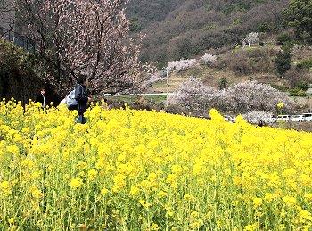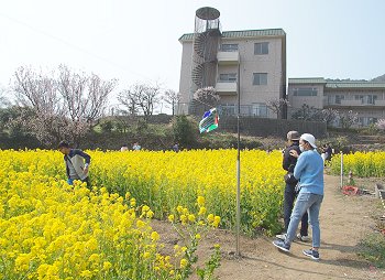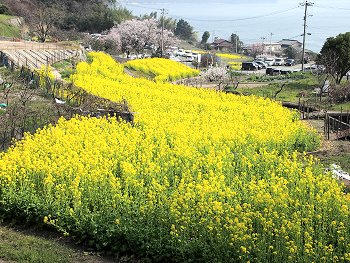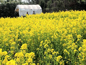 十三仏会場を後にしましてエクセル方向に下っておりますと眼に入りますのが菜の花畑。