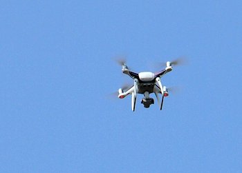 軽快なファンの音で上空を見上げますとドローンが(^.-)☆