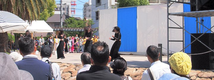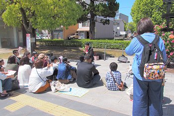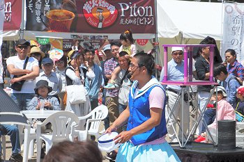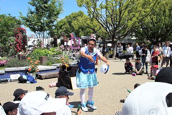 バラ公園内を一通り廻り抜けて行こうとしますと、公園の一角で大道芸が熱く始まっておりました(^.-)☆