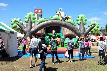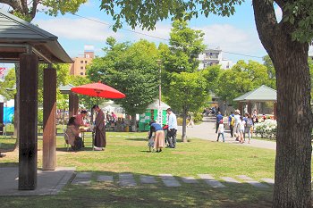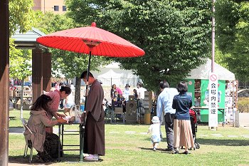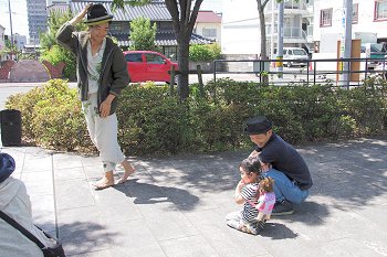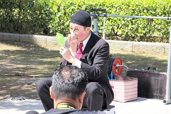 中央公園出口付近でも、パフォーマーが準備の真っ最中。