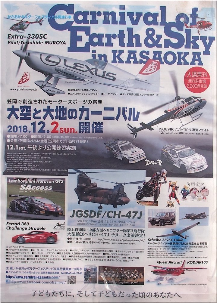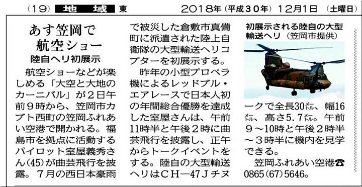 中国新聞sanの、こんな朝刊記事に誘われて12月02日は、笠岡ふれあい空港で開催の『大空と大地のカーニバル2018』に出掛ける事となりました(^.-)☆