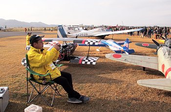 まず最初に眼に入りましたのが模型飛行機です。結構大きいですから、後ほどデモフライトがありますのでしょうけど、きっと迫力がありますでしょうねぇ〜