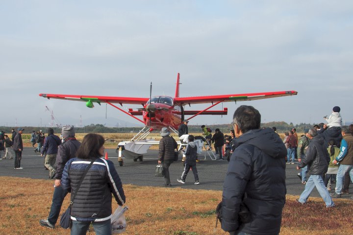 続いて水陸両用機ですけど、こちらも搭乗は可能です。が、順番待ちの列はありません。大型輸送ヘリほど物珍しさはありませんのかも…