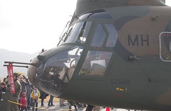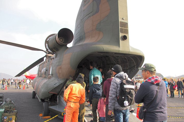 それから、皆さんの足は「水陸両用機」&「大型輸送ヘリCH-47J」へと向かいます。