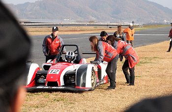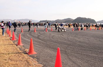 滑走路の一角に三角コーンで囲まれたゾーンが…中には1台のバイクが…後で何か始まりますのかも…
