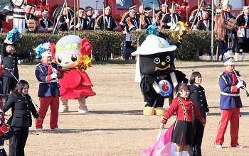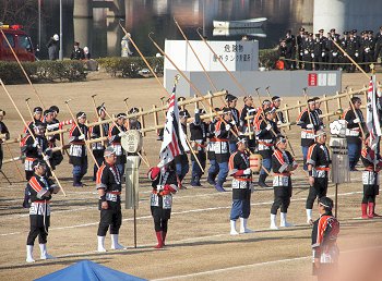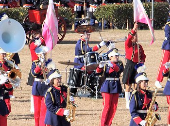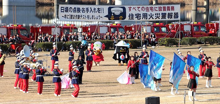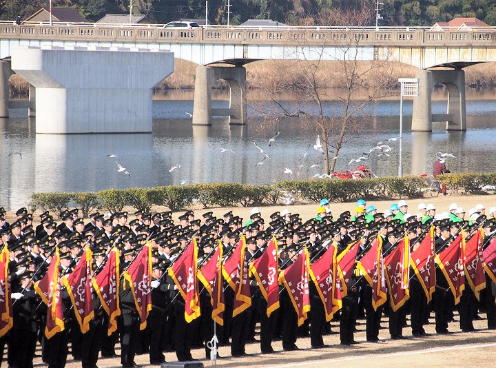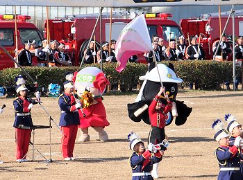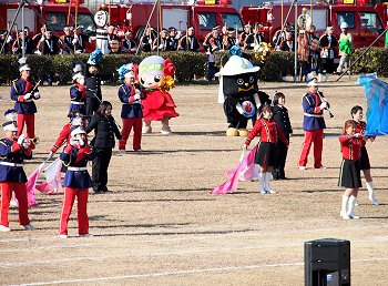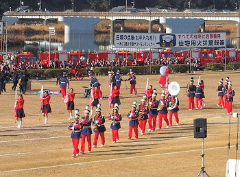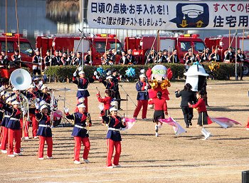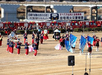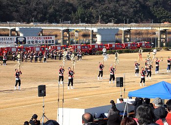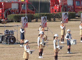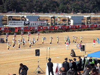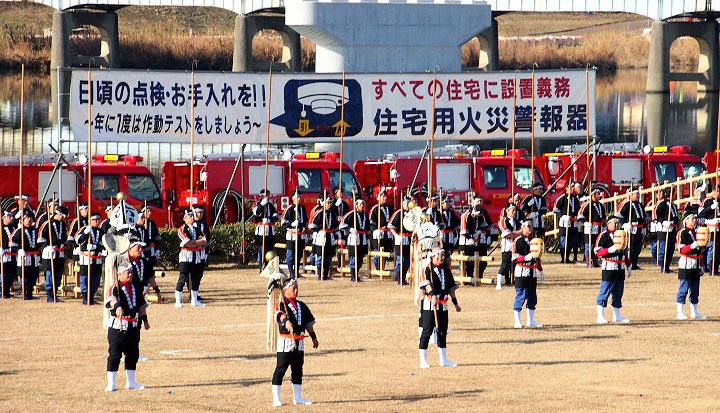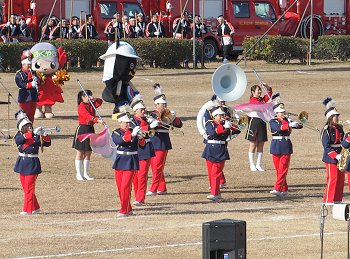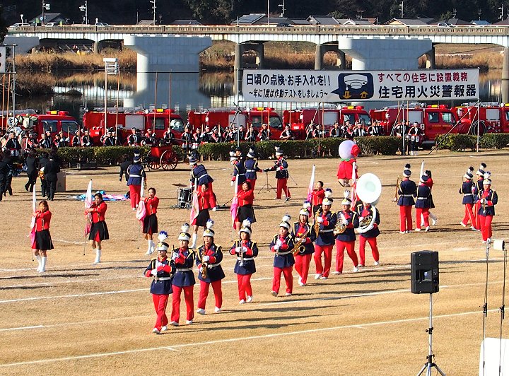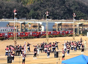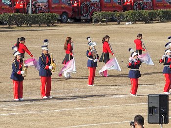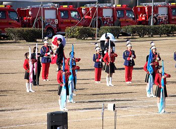 そして、その後は、光学区少年少女消防クラブの皆様のマーチング、消防音楽隊のマーチング、木遣(はしご乗り)と続きます。