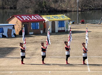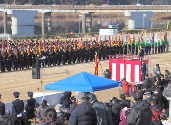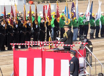 来賓祝辞、樹徳分団長の決意表明、国旗降納で、ヤッと式典も終了となりました。
